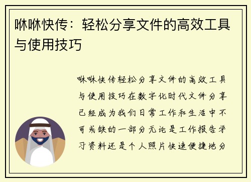 咻咻快传:轻松分享文件的高效工具与使用技巧