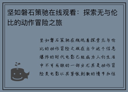 坚如磐石策驰在线观看:探索无与伦比的动作冒险之旅