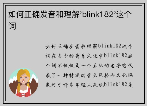 如何正确发音和理解'blink182'这个词   在当今的音乐文化中,'blink182'这个词不仅仅是一个乐队的名字,它代表了一种特定的音乐风格和文化现象。对于许多年轻人来说,'blink182'是...